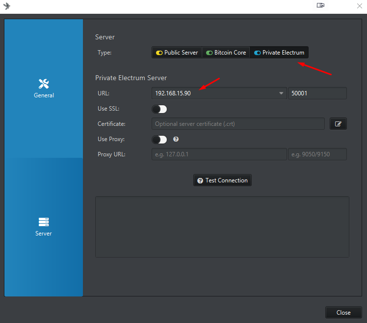 Aqui é um exemplo de como eu conecto diretamente minha instalação da Sparrow no meu próprio node através da rede local, apenas apontando para o endereço IP do meu umbrel. Muito simples: