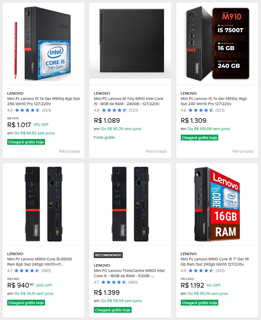 Para o mini PC eu recomendo que você adquira no MercadoLivre os modelos da Lenovo usados que vem em excelente estado e são muito mais baratos do que adquirir um modelo novo. Eles são bastante compactos, consomem pouca energia e tem um desempenho excelente (busque “mini pc lenovo)“: