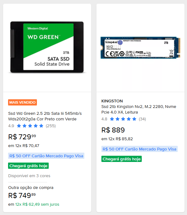 Esses modelos da Lenovo são compatíveis com SSDs do modelo NVM (aquele acima que parece um pente de memória) mas os convencionais são mais baratos e já fornecem um desempenho ótimo.